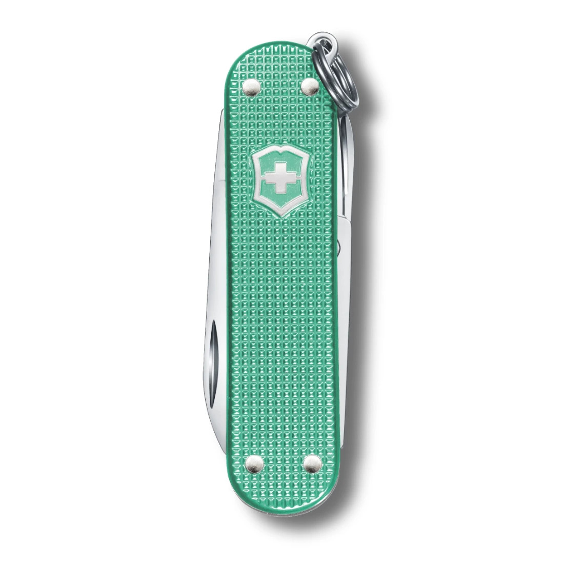 Características clave - Una herramienta compacta y multifuncional que alberga lo esencial - Navaja de bolsillo hecha en Suiza con 5 funciones y cachas Alox de alta calidad - Incluye tijeras, lima de uñas y un destornillador