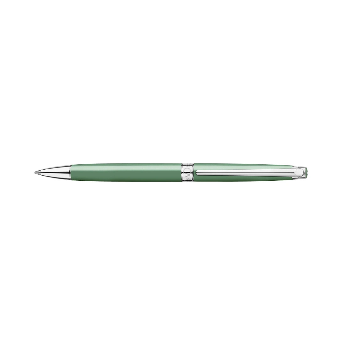 Cuerpo y capuchón de latón recubiertos de laca satinada Logotipo de Caran d'Ache y “Swiss Made” grabado en la anilla Botón con la identificación de Caran d'Ache (hexágono lacado en verde gris) Mecanismo giratorio de alta precisión Clip y botón plateados y rodiados