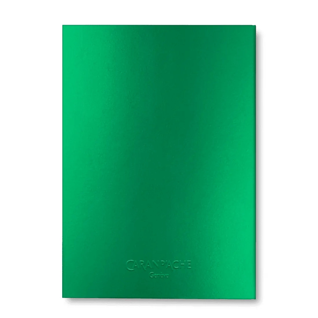Formato A5: 210 x 148 mm Cubierta dura, papel 300g/m² Acabado metálico estampado en frío Logotipo Caran d'Ache en relieve en el reverso del cuaderno 120 páginas Encuadernación cosida y pegada para una apertura plana de 180° Papel blanco rayado Papel FSC™, 90 g/m², sin ácido Envoltura individual Peso: 0,220 kg