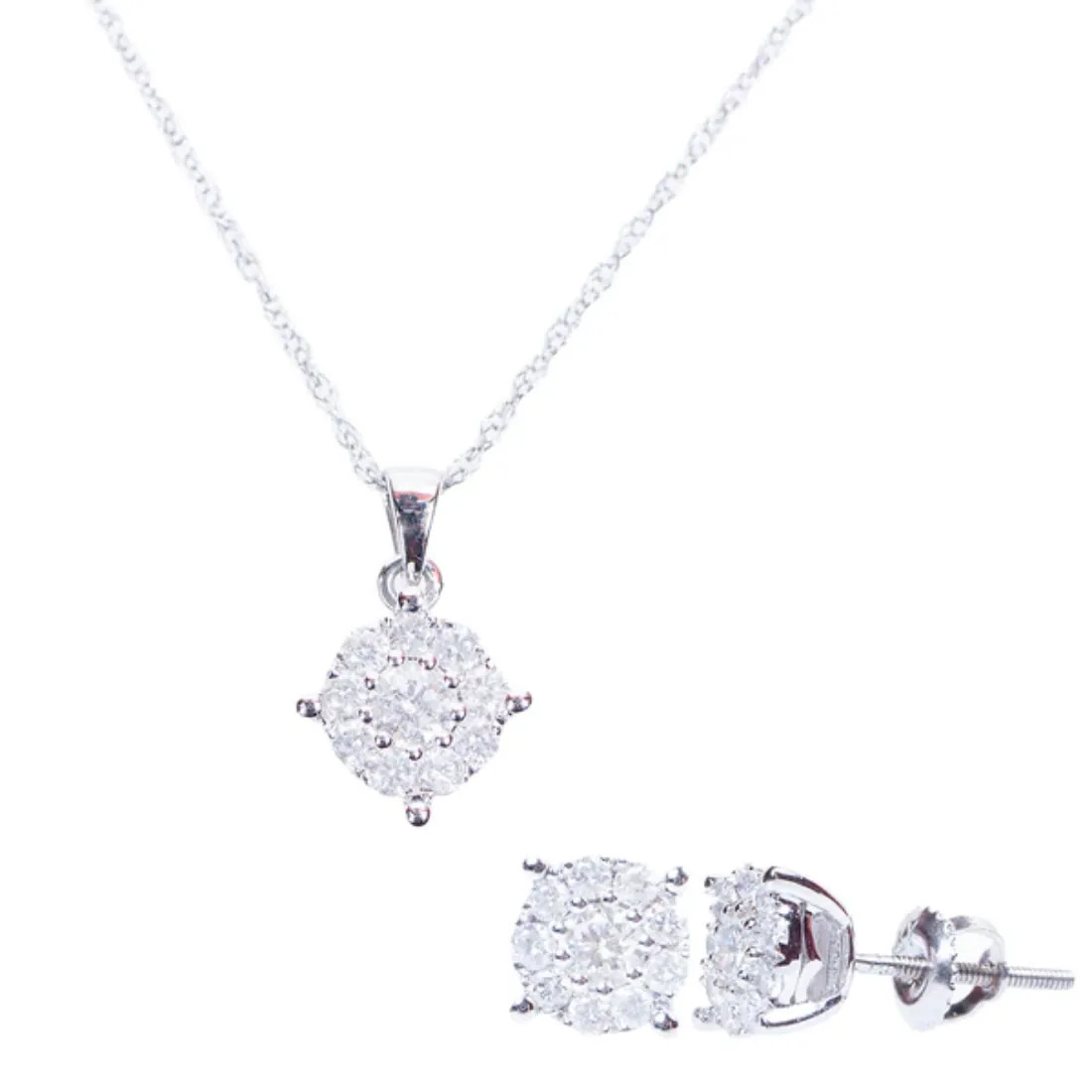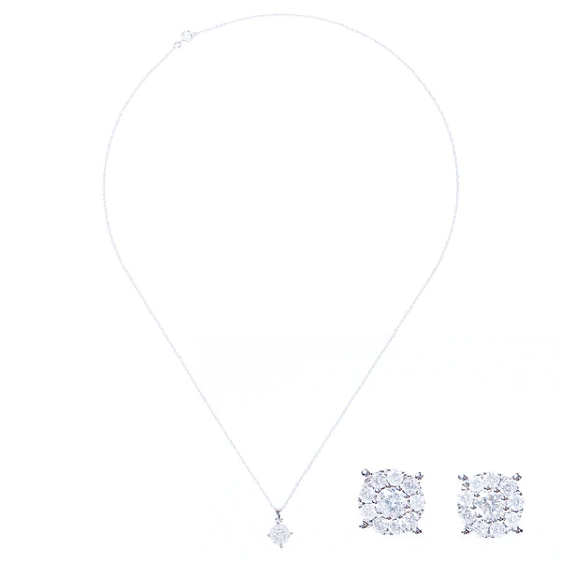 Set De Gargantilla Y Aretes En Oro Blanco 14k Con Diamantes