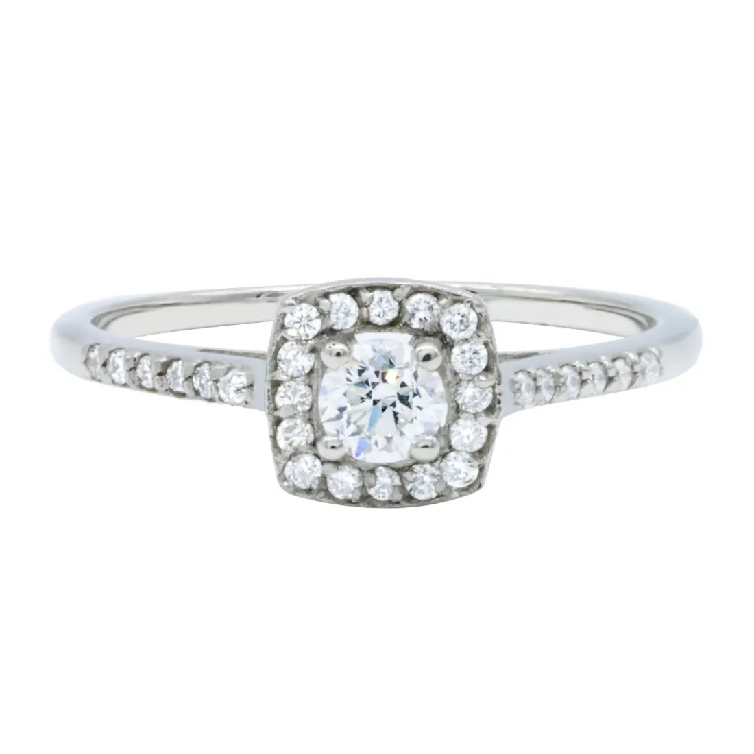 Anillo De Compromiso De Oro Blanco 14k Con Halo De Diamantes