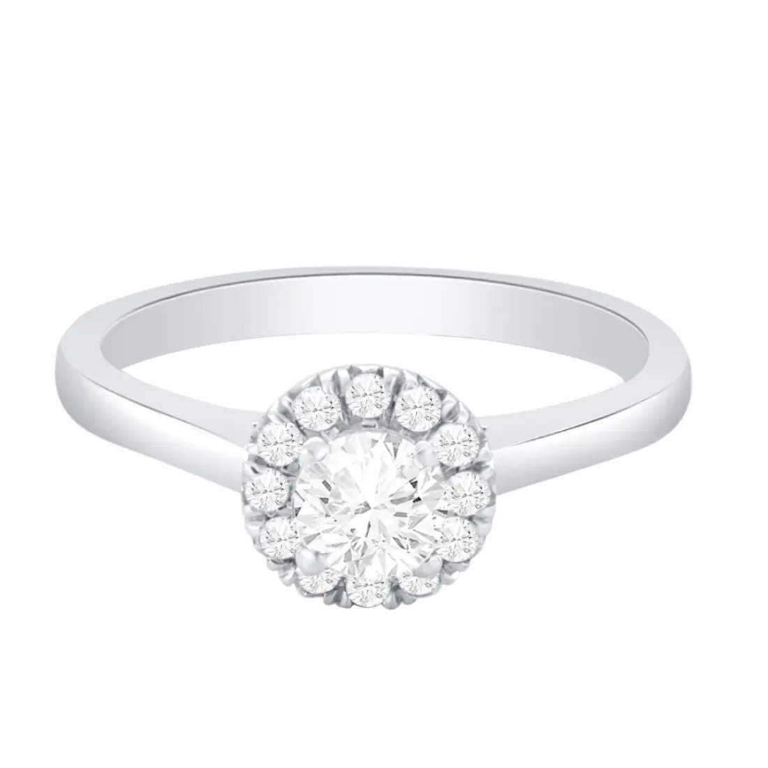 Anillo De Compromiso Estilo Halo Oro Blanco 14k Con 21 Diama