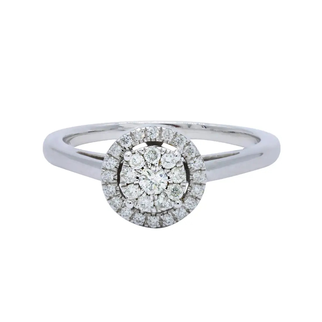 Anillo de Compromiso Oro Blanco 14K con Halo de Diamantes