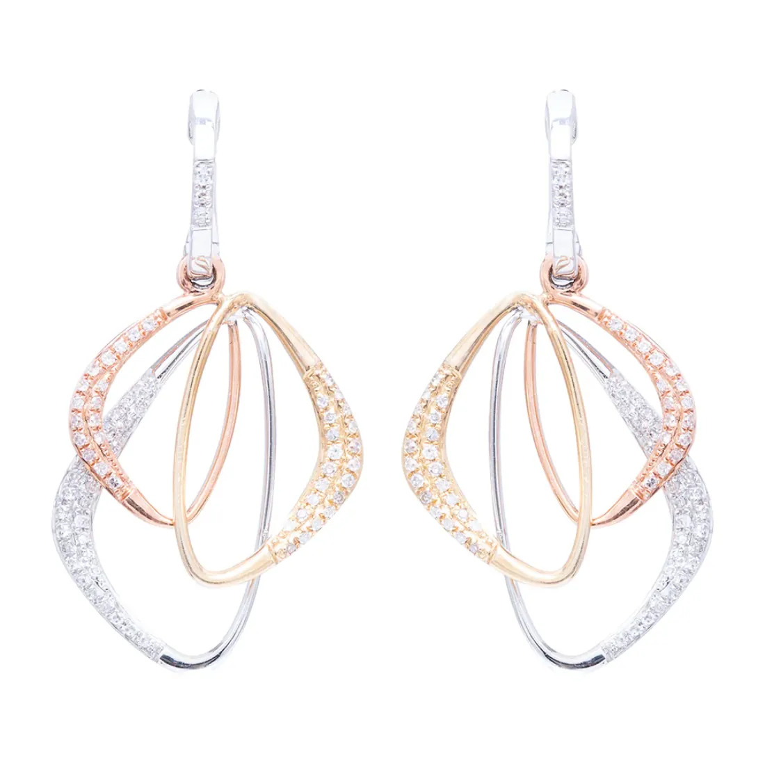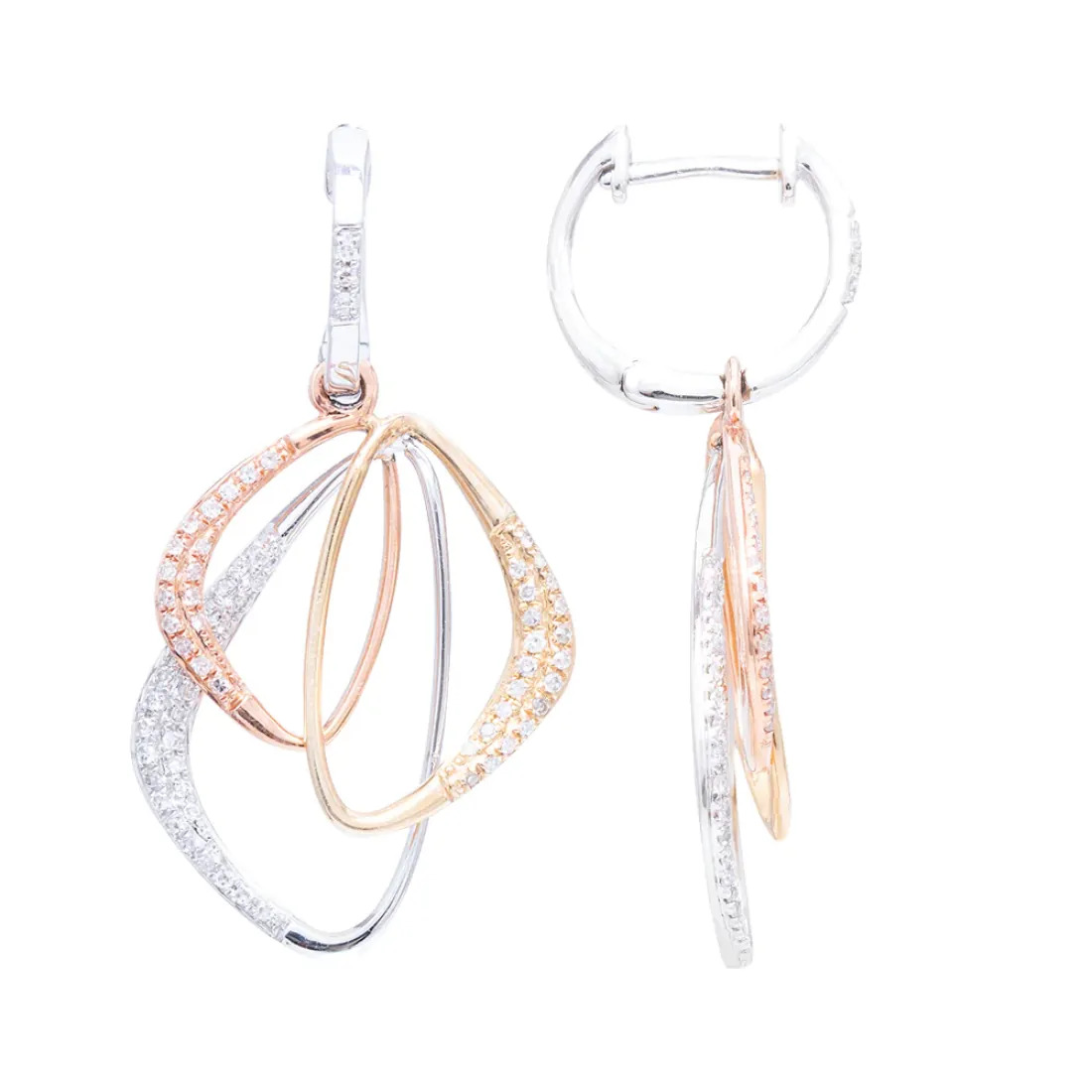 Aretes Abstract De Oro Blanco Amarillo Y Rosa 14k