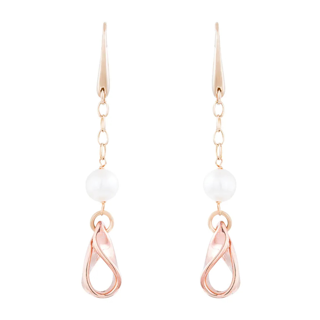 Aretes En Oro Rosa 14k Con Perlas Naturales