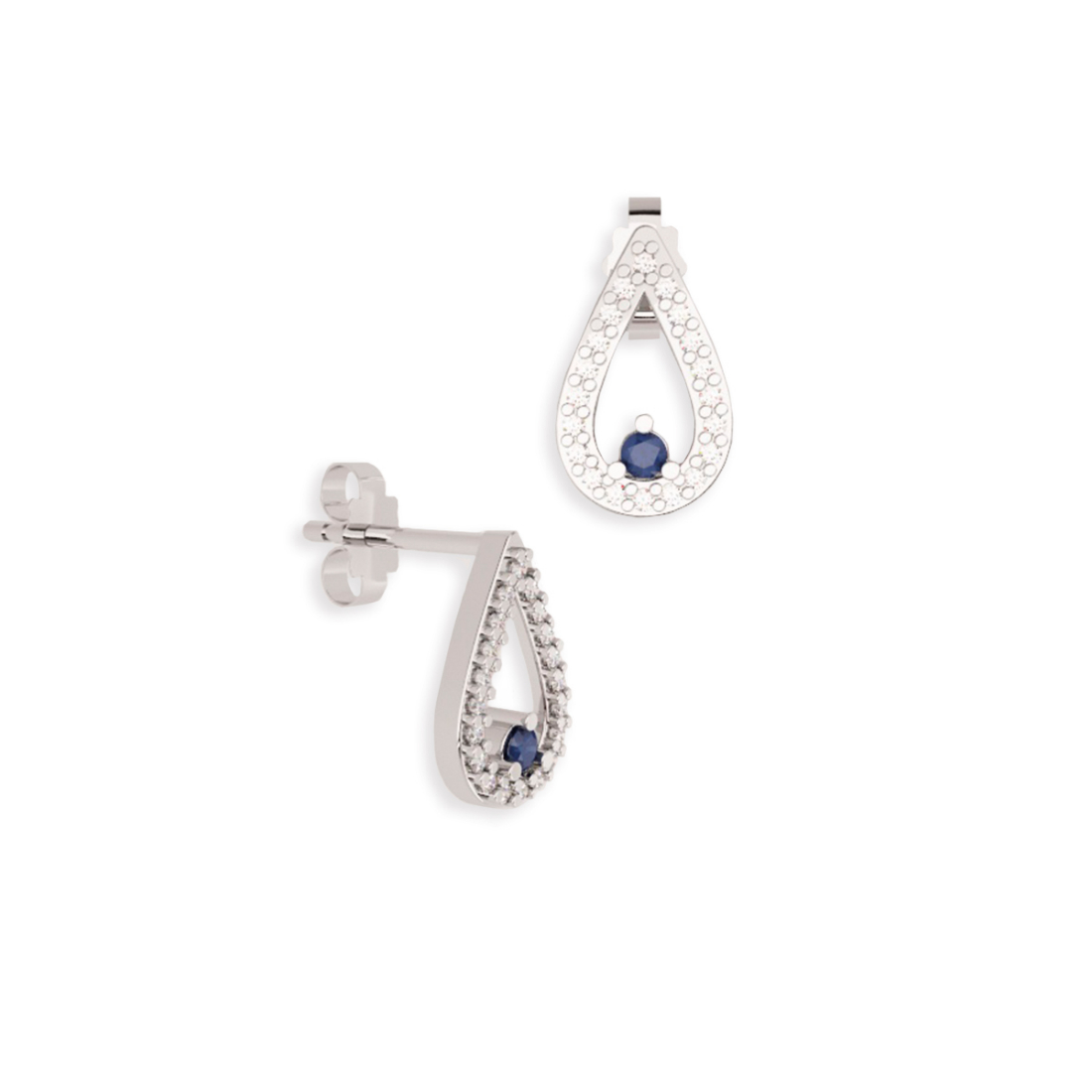 Aretes Gota Oro Blanco 14K Diamante-Zafiro