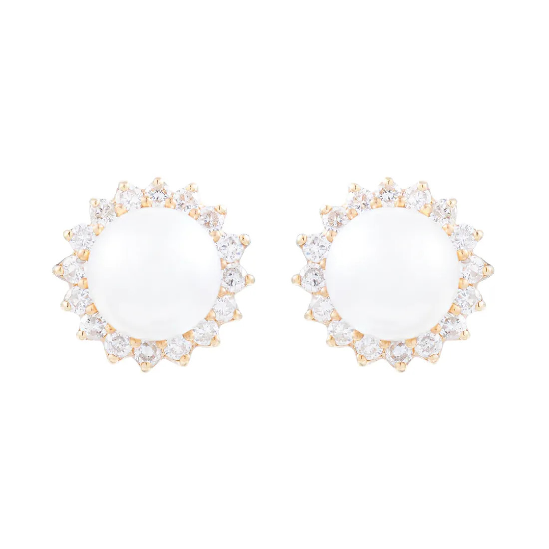 Aretes Tipo Stud En Oro 14k Con Perlas Naturales