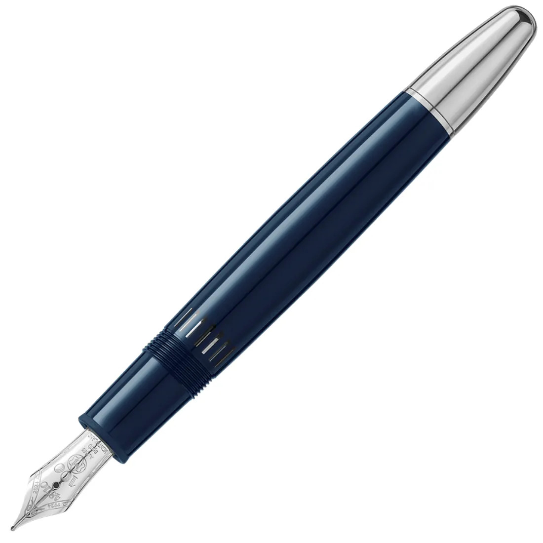 Resina preciosa azul presenta un motivo fluido inspirado en los primeros diseños que representa la disolución de la tinta en el papel, creando un elegante contraste con los detalles con acabado platinado Logotipo original de Meisterstück, que ha adornado el capuchón como símbolo de alta calidad desde su creación