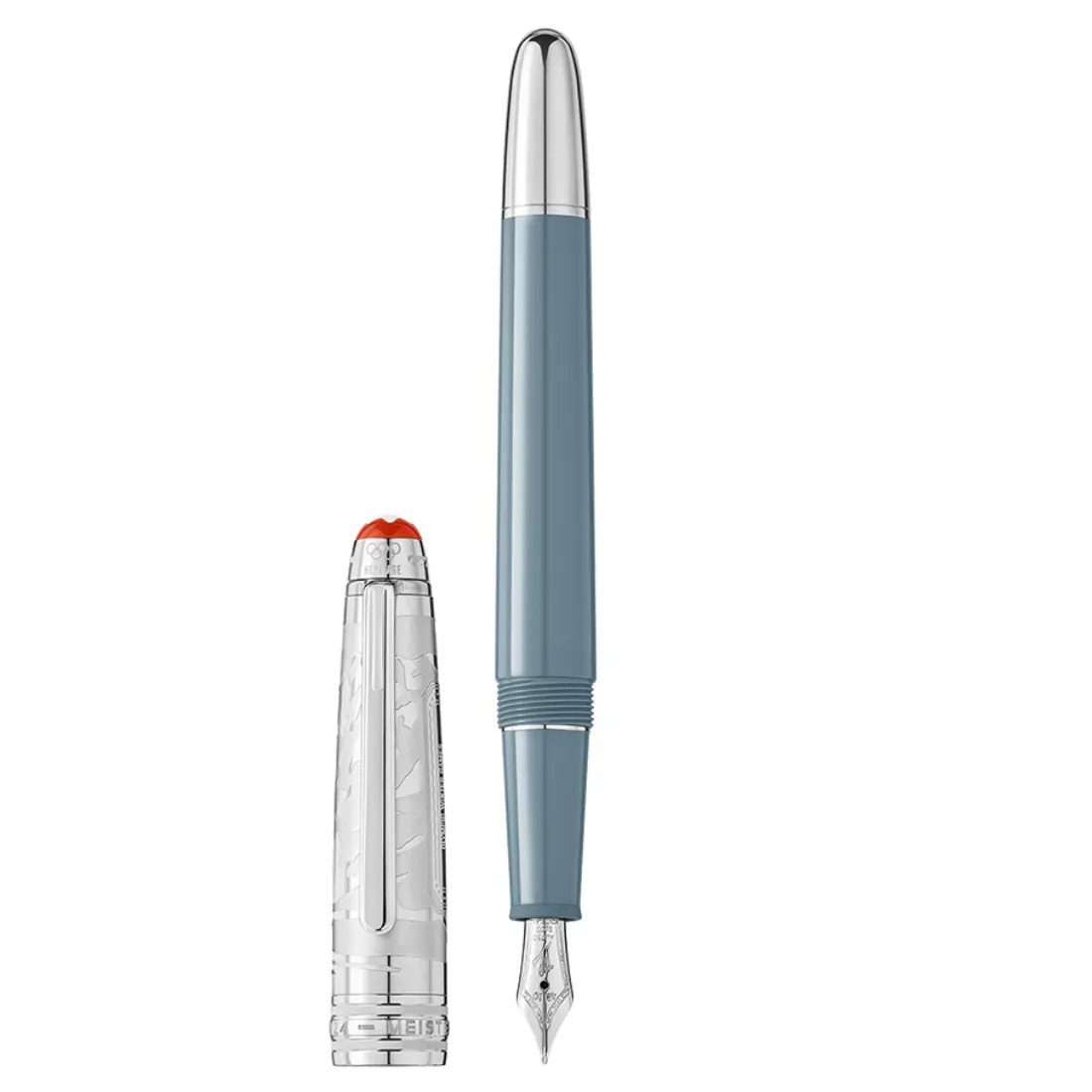 Capuchón con acabado platinado que presenta un grabado del paisaje montañoso del valle de Chamonix. El anillo del capuchón del aniversario presenta tanto "1924" como "2024", simbolizando así la importancia de ambos años. Coronando la edición encontramos el emblema Montbla