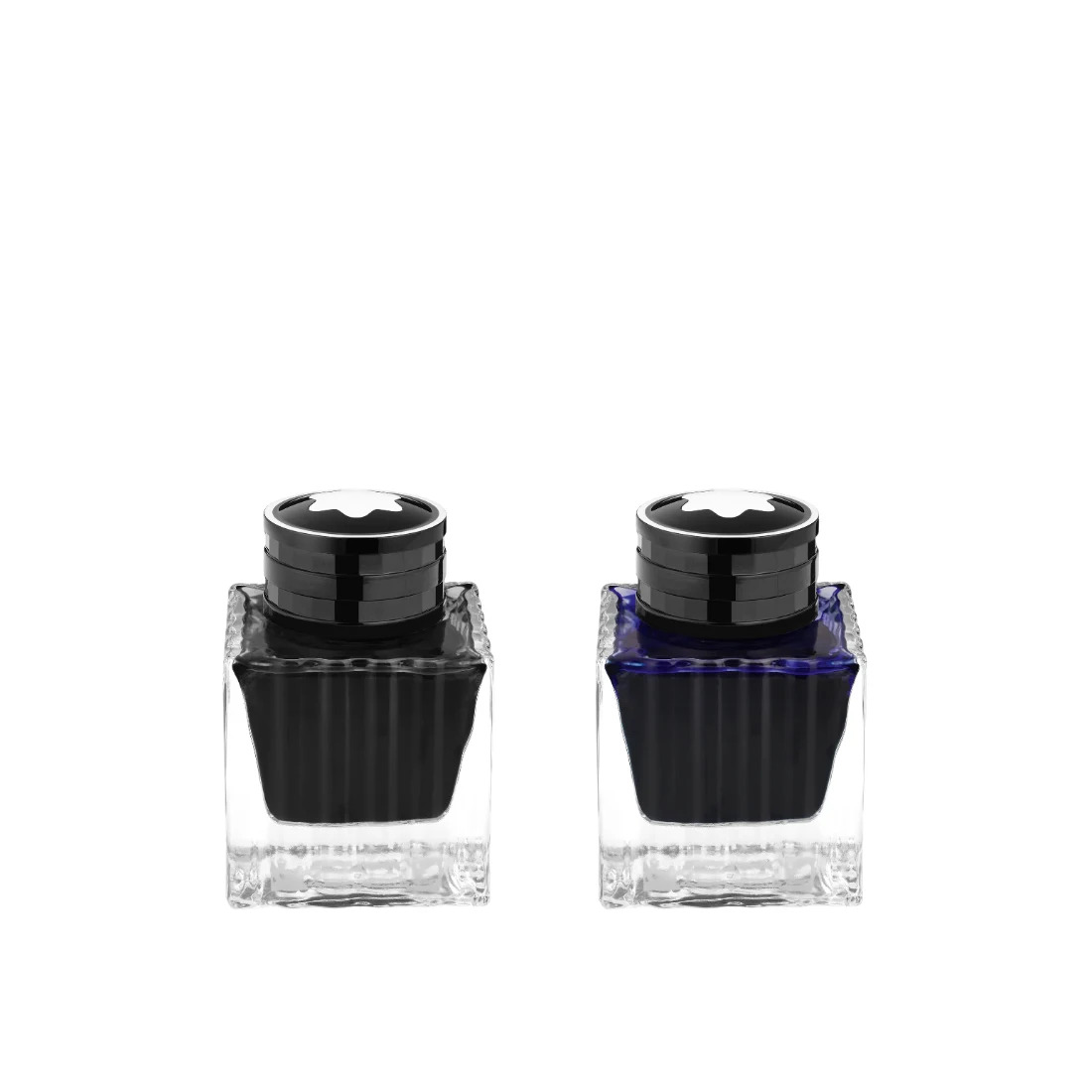 Incluye tintas Montblanc negras y azules de 50 ml, un estuche de piel negra, una herramienta de limpieza, un adaptador para el tintero y un adaptador para la contera.