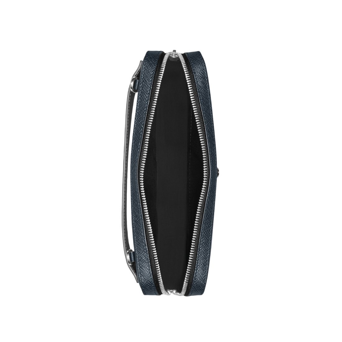 Inspirado en el mundo de la escritura, este minibolso bandolera está elaborado en piel Sartorial repujada en una refinada combinación bicolor de elegante azul y negro. Diseñado para ofrecer versatilidad, puede llevarse en la mano o al hombro gracias a la correa ajustable y extraíble.