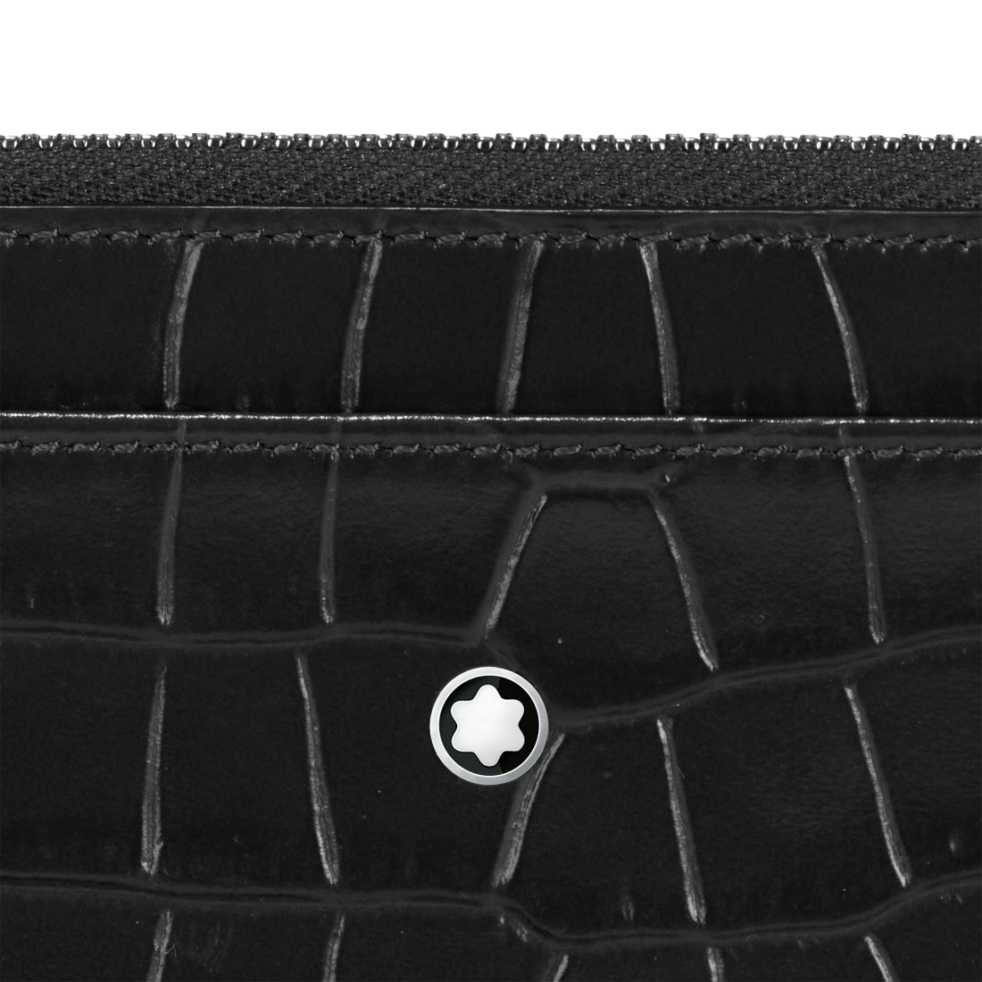 Funcional y compacta, esta bolsa de cuero en relieve de cocodrilo está diseñada para almacenar los elementos esenciales cotidianos con estilo. Cuenta con ranuras para ocho tarjetas de crédito, dos bolsillos abiertos y un compartimento con cremallera que puede acomodar un teléfono móvil. Lleve dentro de un accesorio más grande como una bolsa en bolsa, o use el asa de la muñeca para una opción de estilo moderno."