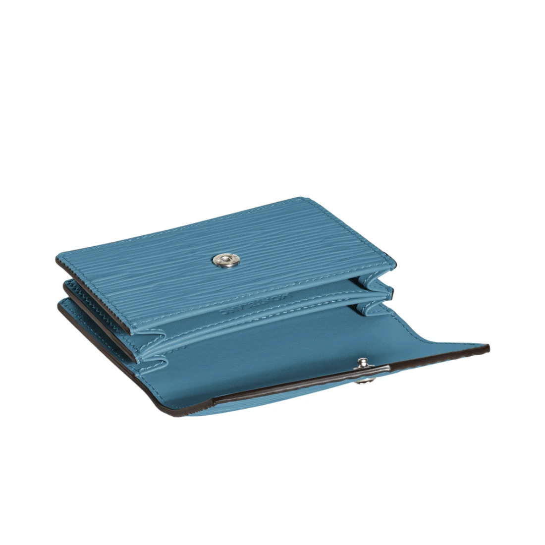 Diseñado para aquellos con un enfoque minimalista y funcional de su estilo diario, el elegante tarjetero 4810 está elaborado en piel azul ahumado con un atrevido motivo de corteza de árbol. Este elegante accesorio presenta un cierre de solapa con cierre de botón de presión, que garantiza poder guardar con seguridad sus tarjetas. Descubra el resultado del auténtico trabajo artesanal y de la atención permanente por los detalles.