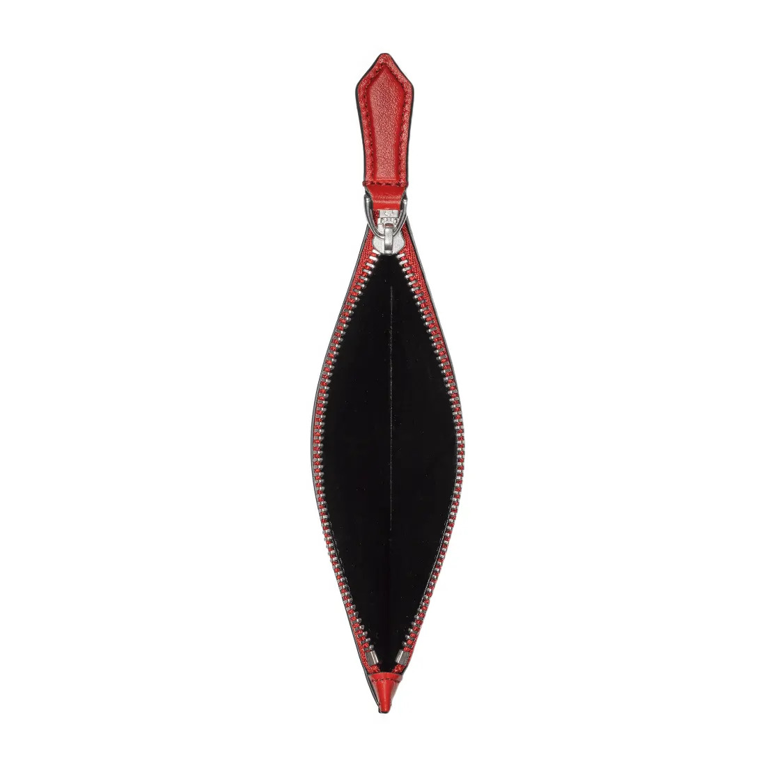 Compacto pero versátil, este tarjetero con cremallera viene con una gama de detalles funcionales para complementar la vida en movimiento. Su silueta de cuero de brillo profundo cuenta con un bolsillo frontal con una solapa, que se puede utilizar para guardar tarjetas o billetes. También hay un bolsillo con cremallera para monedas, así como un bolsillo abierto que ofrece fácil acceso a las pertenencias. Inspirado en el mundo de la escritura, el tirador de cremallera de cuero tiene la forma de parecerse a una punta.