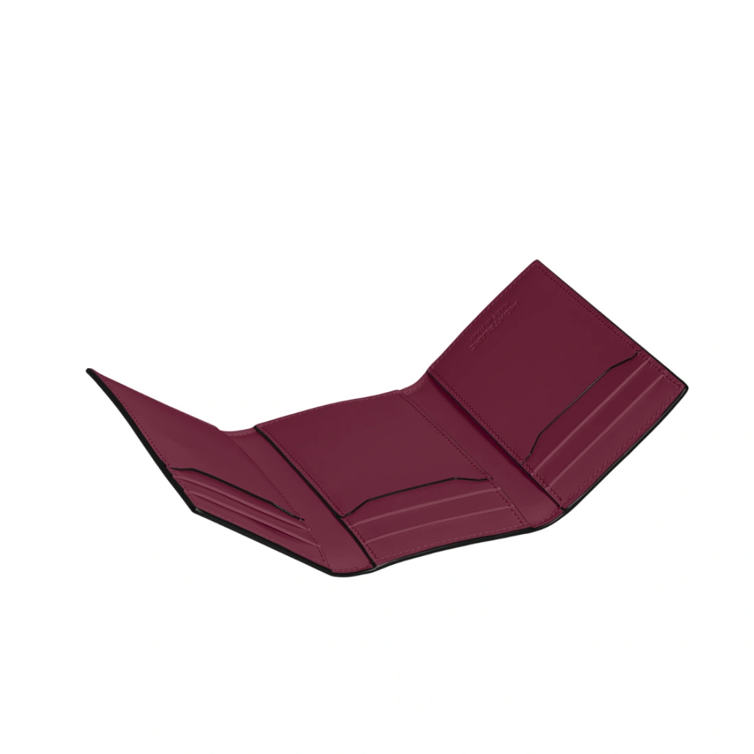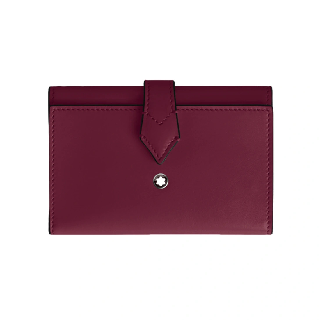 Mantenga sus esenciales a mano con el nuevo tarjetero Meisterstück, meticulosamente elaborado en elegante piel color cassis. El refinado accesorio presenta un cierre de presión con forma de plumín, un sutil guiño al rico legado de Montblanc en el arte de la escritura. Cuenta con nueve ranuras para tarjetas de visita y de crédito, además de tres bolsillos adicionales para todos sus esenciales.