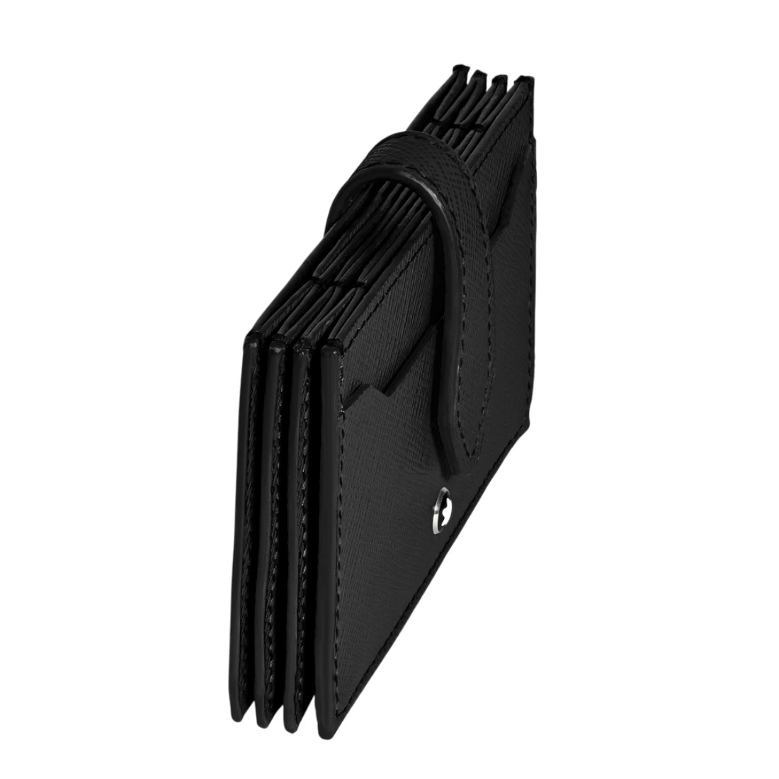Diseñada para guardarla sin problemas en la mayoría de los bolsillos, esta cartera está elaborada en piel repujada con estampado Saffiano en un elegante negro. En su interior, encontrará cinco ranuras para tarjetas de crédito y tres bolsillos adicionales, que proporcionan un amplio espacio para organizar sus billetes y los pequeños artículos de manera eficiente.