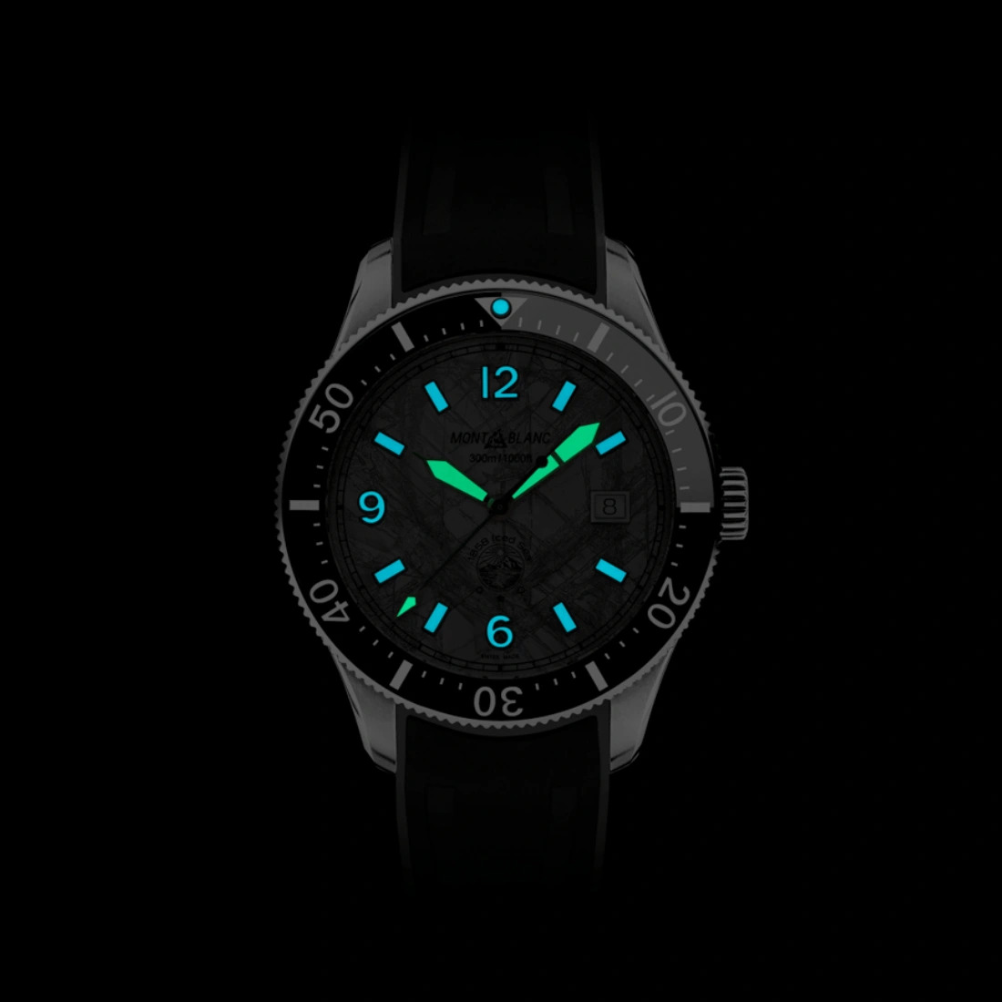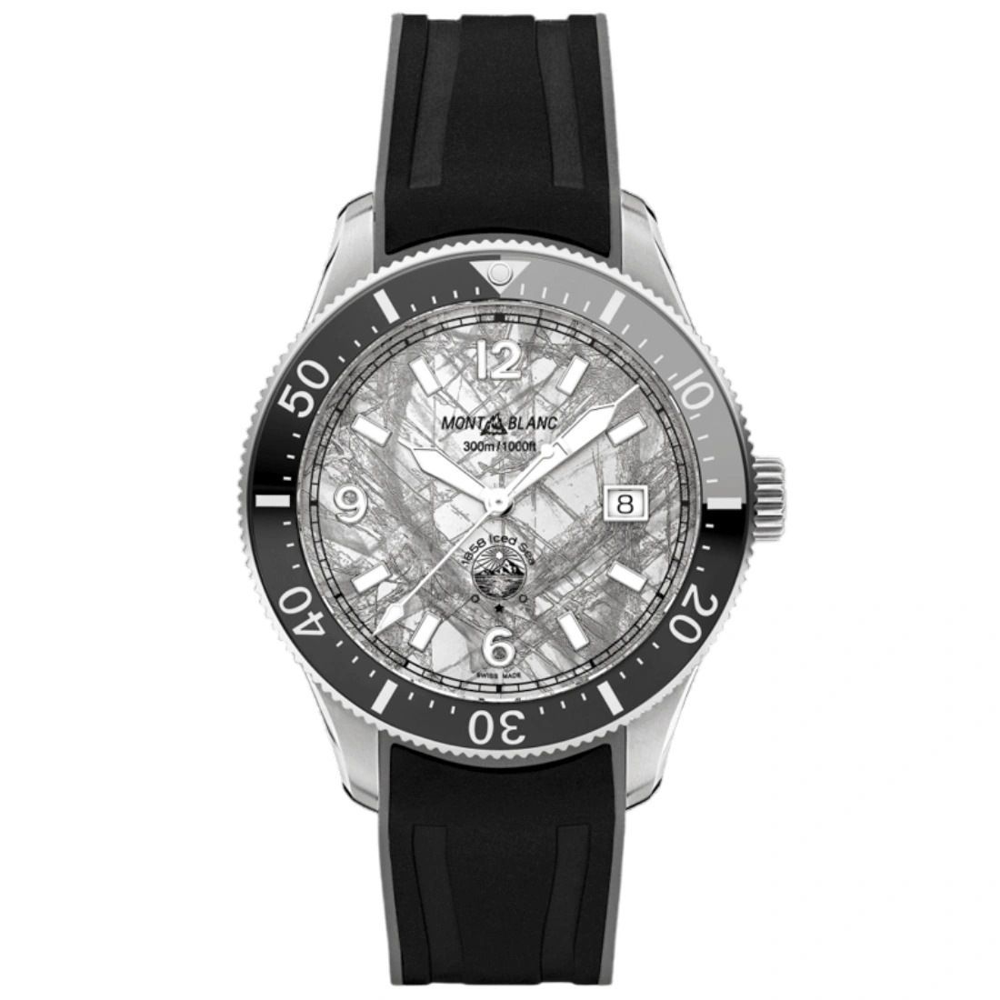 El reloj Montblanc 1858 Iced Sea Automatic Date Edición Boutique, que presenta una esfera gris con motivo de glaciar, transmite la sensación de estar contemplando las profundidades de un glaciar con todos sus minerales congelados desde hace miles de años. Inspirada en la Mer de Glace, esta textura glacial se ha conseguido mediante una técnica ancestral prácticamente olvidada que se denomina gratté-boisé.