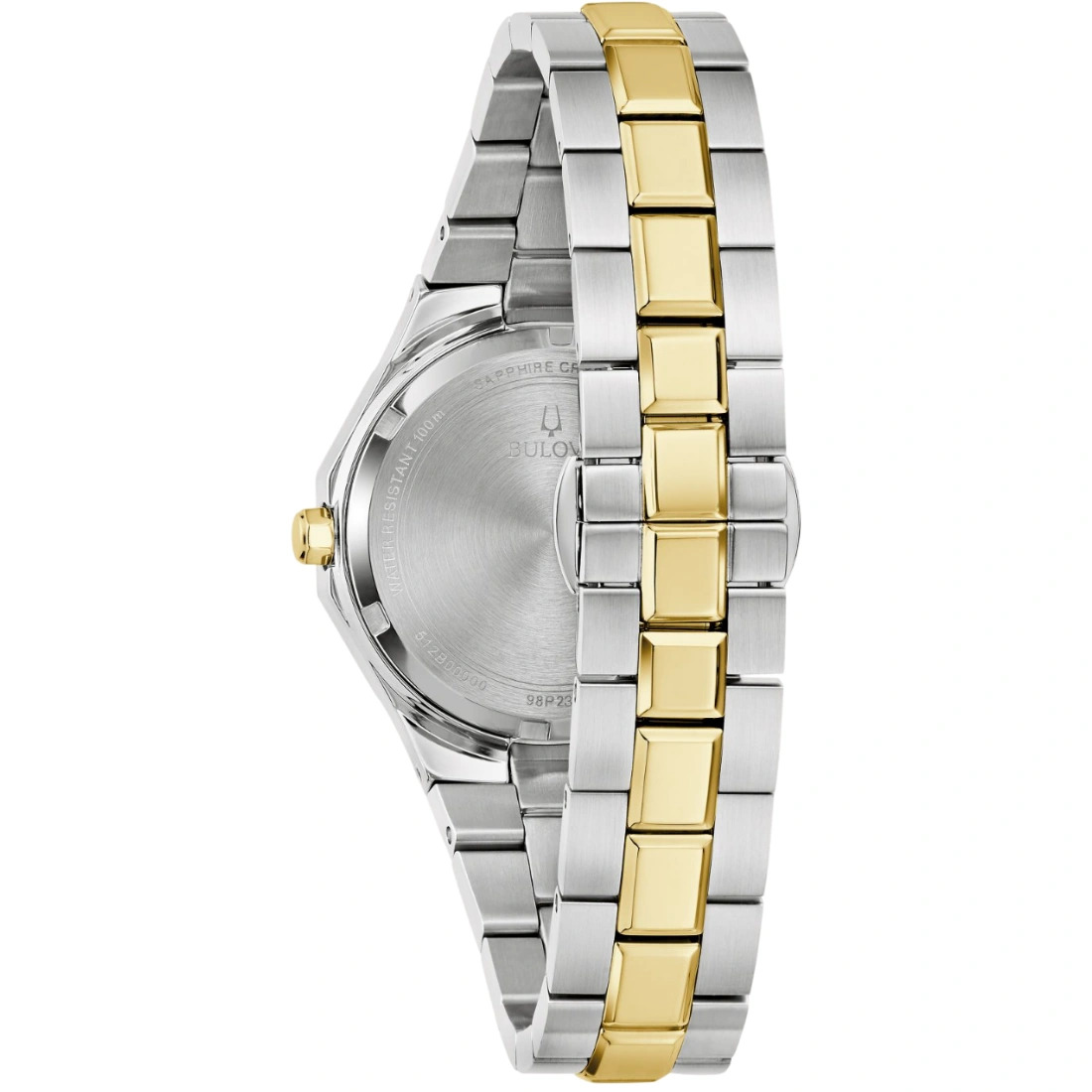 Un diseño audaz y elevado caracteriza a este reloj de la colección Classic de Bulova Prestige para mujer que equilibra un diseño audaz con una presencia elegante. La reluciente esfera de nácar tiene agujas doradas y marcadores aplicados con relleno luminiscente Super-LumiNova, 8 resplandecientes diamantes e indicador de fecha. Este reloj Bulova para mujer es realmente impresionante tanto por su modernidad como por su sofisticación y resulta el compañero ideal para cualquier muñeca.