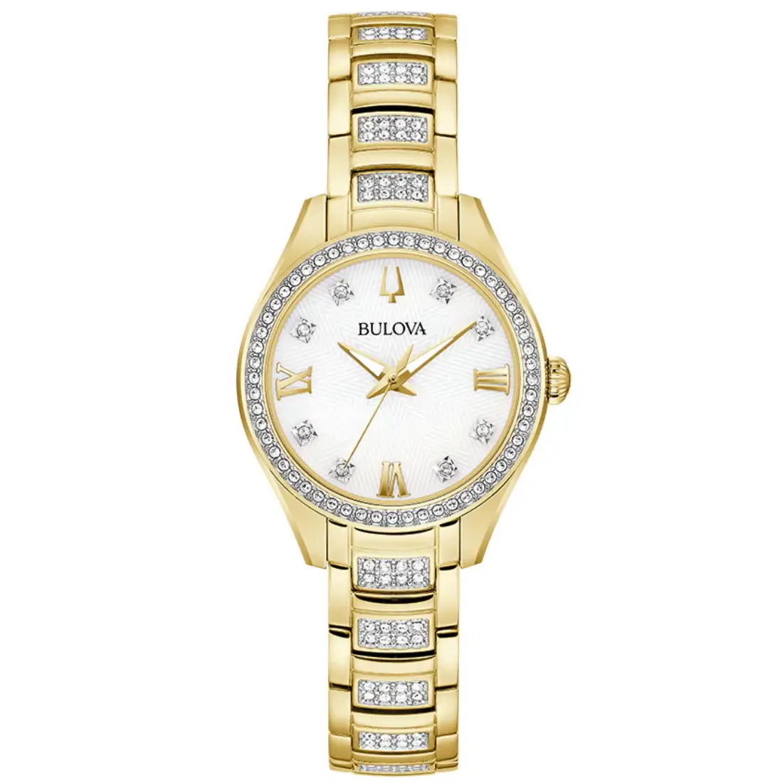 Dorado Acero Inoxidable Bisel con cristales montados de forma individual a mano
