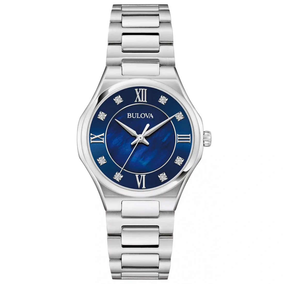 Azul Detalles en Plateado 8 diamantes montados de forma individual a mano en carátula como indicadores