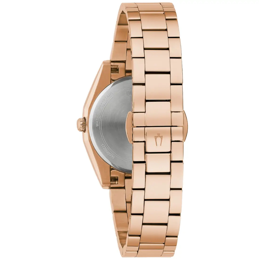 Cuarzo Un movimiento alimentado por batería. El cristal de cuarzo regula el tiempo logrando una precisión de 15 segundos al mes.