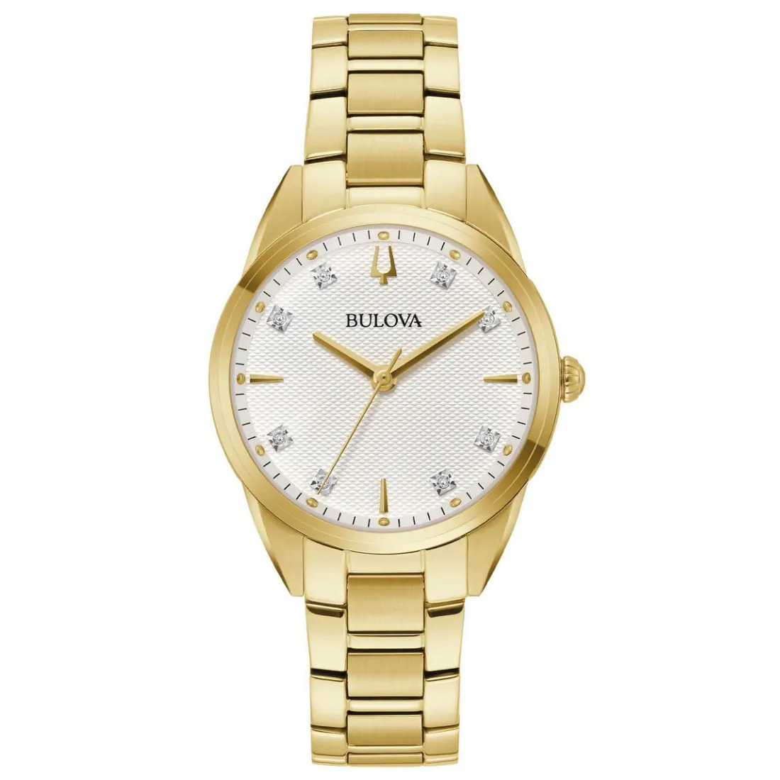 Blanco Detalles en Dorado 8 diamantes montados de forma individual a mano en carátula como indicadores