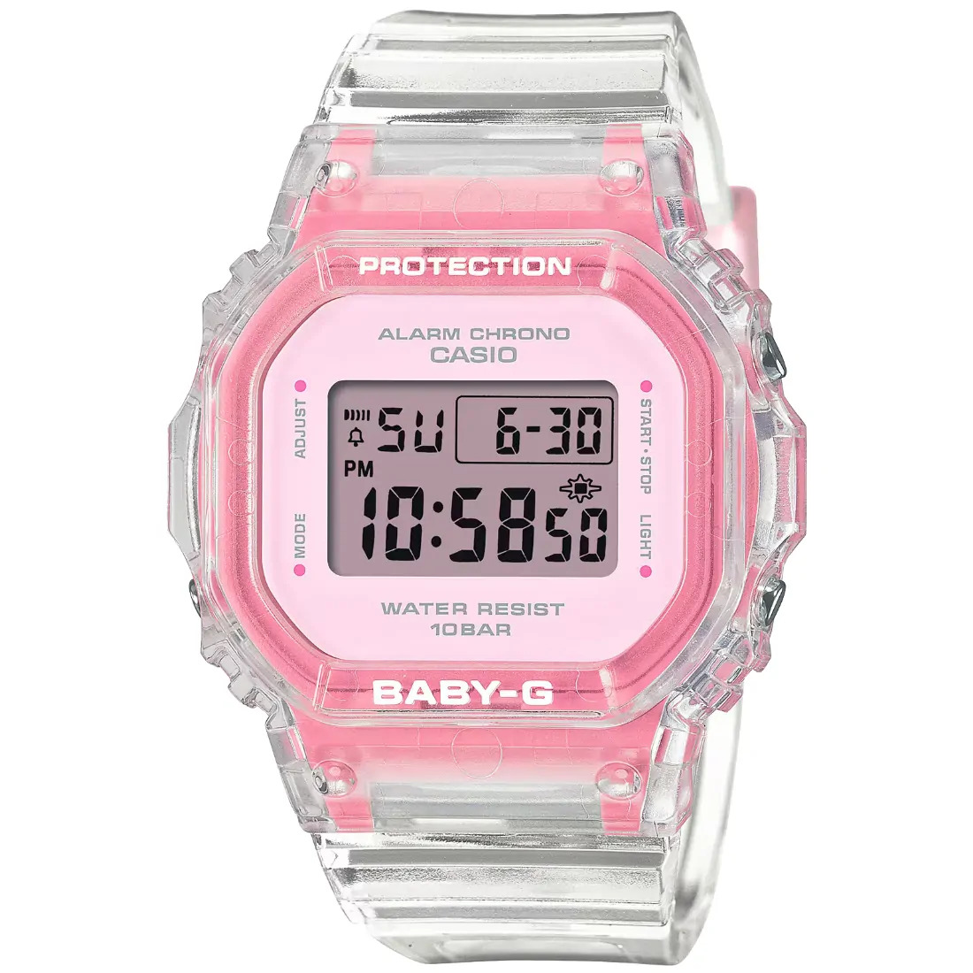 Tamaño de la caja (L× W× H): 42.1 × 37.9 × 11.3 mm Material de la caja/bisel: Resina Peso: 30 g Correa de resina Resistente a impactos Resistencia al agua de 100 m Fuente de alimentación: pila