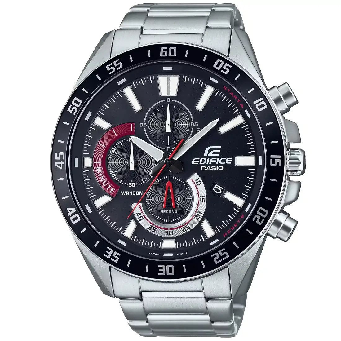 Cronómetro Precisión: ±20 segundos por mes Funciones clásicas de reloj: Analógica: 3 manecillas (hora, minuto, segundo), 3 diales (1/10 segundos de cronómetro, minutos del cronómetro, segundos del cronómetro) Pantalla de fecha