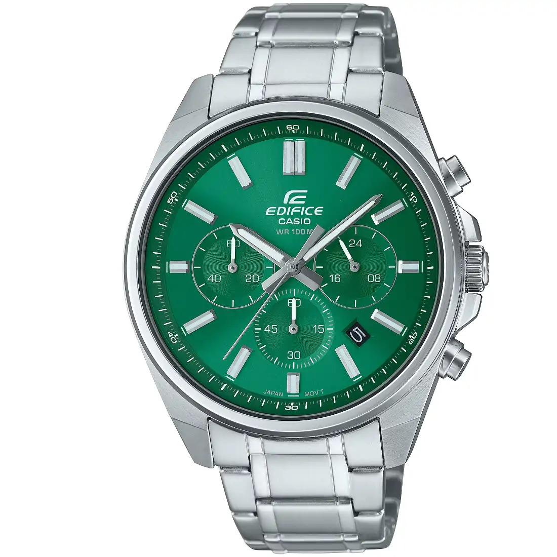 Cronómetro Precisión: ±20 segundos por mes Funciones clásicas de reloj: Analógica: 3 manecillas (hora, minuto, segundo), 3 diales (24 horas, minutos del cronómetro, segundos del cronómetro) Pantalla de fecha