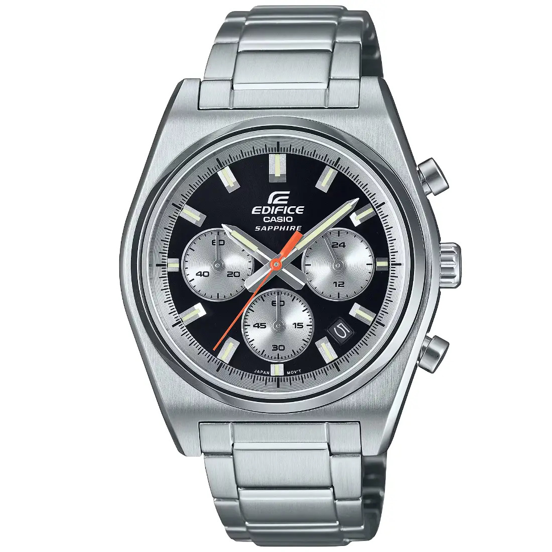 Cronómetro Precisión: ±20 segundos por mes Funciones clásicas de reloj: Analógica: 3 manecillas (hora, minuto, segundo), 3 diales (24 horas, minutos del cronómetro, segundos del cronómetro) Pantalla de fecha