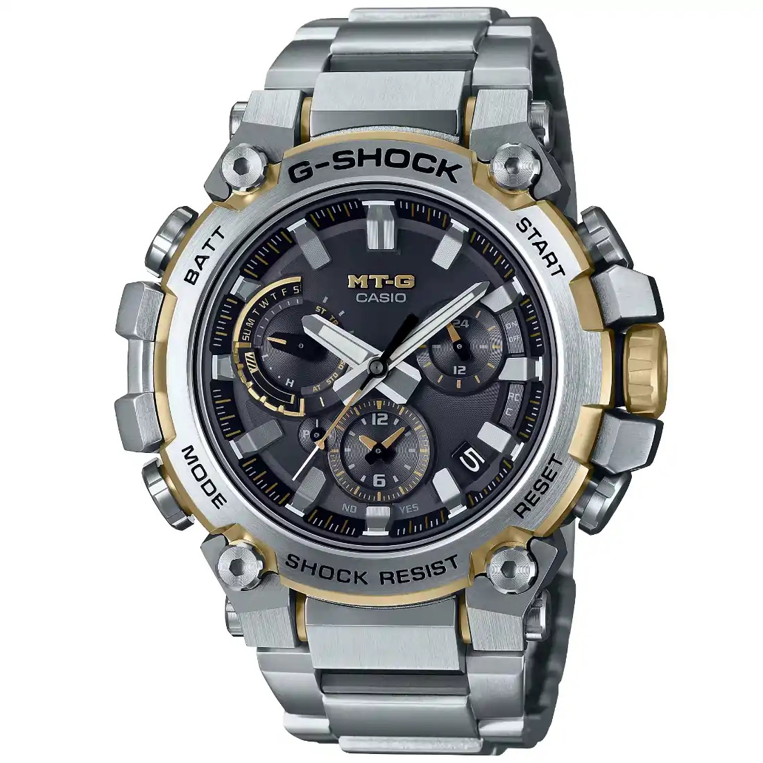 Tamaño de la caja (largo × ancho × alto): 51.9 × 50.9 × 12.1 mm Peso: 148 g Material de la caja y el bisel: Resina/acero inoxidable Correa estratificada compuesta Broche de una pulsación y triple pliegue TRIPLE G RESIST (resistente a impactos, a la fuerza centrífuga y a las vibraciones) Estructura Carbon Core Guard Resistencia al agua de 200 m Reloj radio-controlado; Multiband 6 Fuente de alimentación: Tough Solar (con energía solar)