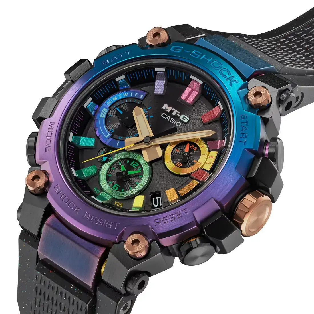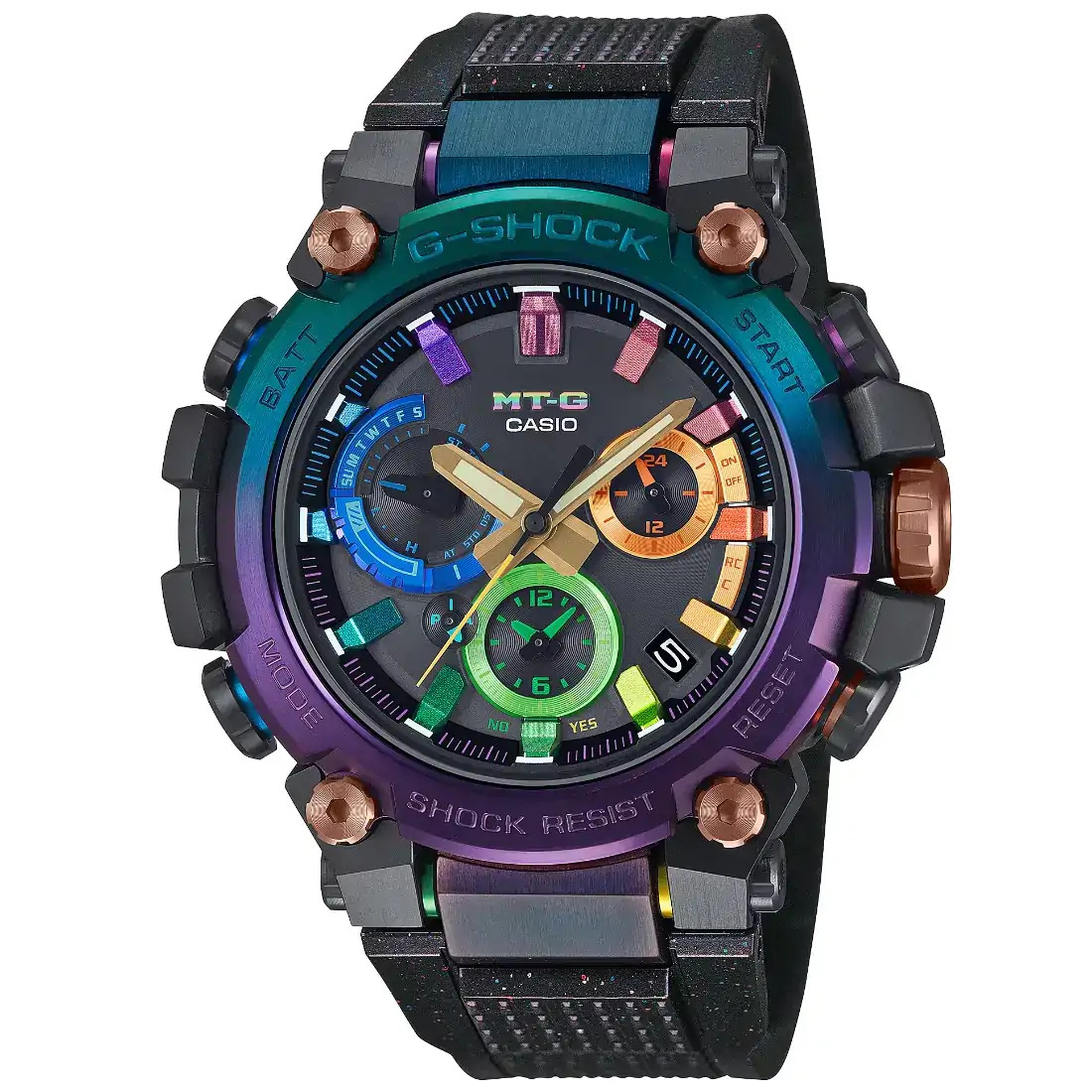 Tamaño de la caja (L× W× H): 51.9 × 50.9 × 12.1 mm Material de la caja/bisel: Carbono/acero inoxidable Peso: 111 g Correa de resina TRIPLE G RESIST (resistente a impactos, a la fuerza centrífuga y a las vibraciones) Estructura Carbon Core Guard Resistencia al agua de 200 m Reloj radio-controlado; Multiband 6 Fuente de alimentación: Tough Solar (con energía solar)
