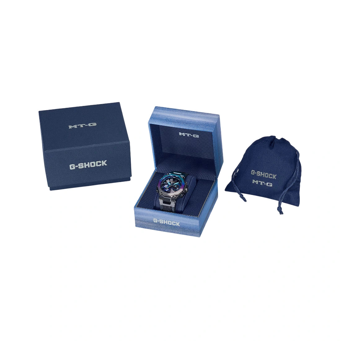 Tamaño de la caja (L× W× H): 55.1 × 49.8 × 15.9 mm Material de la caja/bisel: Carbono/acero inoxidable Peso: 104 g Correa de resina TRIPLE G RESIST (resistente a impactos, a la fuerza centrífuga y a las vibraciones) Estructura Carbon Core Guard Resistencia al agua de 200 m Bluetooth: Se conecta a un teléfono inteligente y ajusta automáticamente la hora. Reloj radio-controlado; Multiband 6 Fuente de alimentación: Tough Solar (con energía solar)
