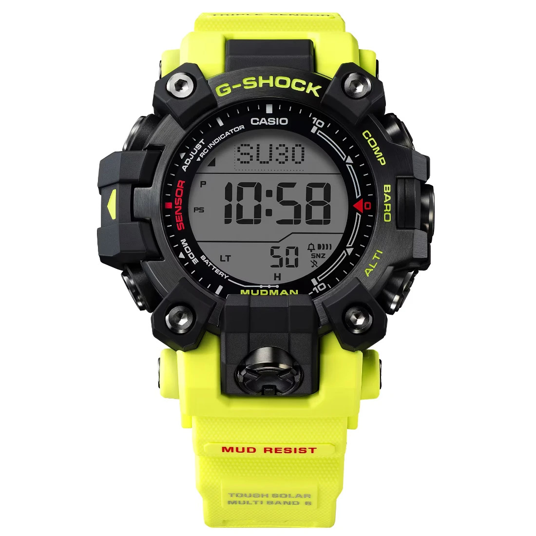 Tamaño de la caja (L× W× H): 56.7 × 52.7 × 14.8 mm Material de la caja/bisel: Carbono de origen biológico/resina de origen biológico/acero inoxidable Peso: 88 g Correa de resina de base biológica Resistente a impactos Resistente al barro Estructura Carbon Core Guard Resistencia al agua de 200 m Reloj radio-controlado; Multiband 6 Fuente de alimentación: Tough Solar (con energía solar) Brújula digital Altímetro Barómetro Termómetro