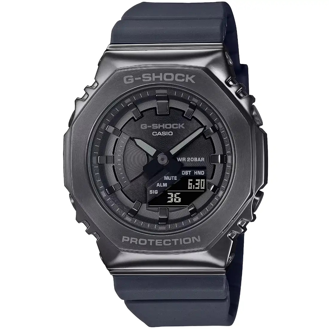 Tamaño de la caja (L× W× H): 45.9 × 40.4 × 11 mm Material de la caja/bisel: Resina/acero inoxidable Peso: 55 g Correa de resina Resistente a impactos Resistencia al agua de 200 m Fuente de alimentación: pila