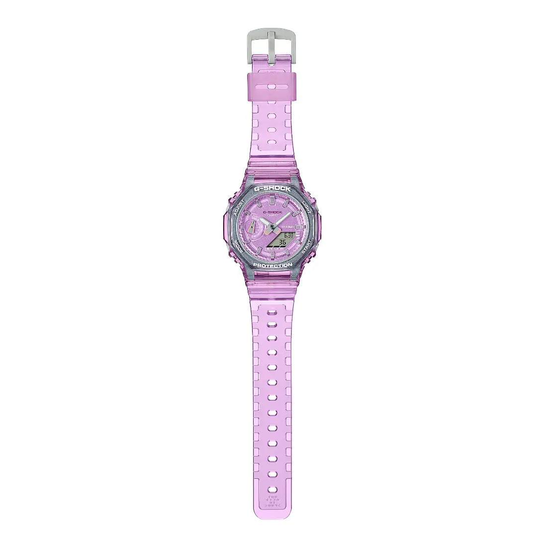 Tamaño de la caja (L× W× H): 46.2 × 42.9 × 11.2 mm Material de la caja/bisel: Carbono/resina Peso: 41 g Correa de resina Resistente a impactos Estructura Carbon Core Guard Resistencia al agua de 200 m Fuente de alimentación: pila
