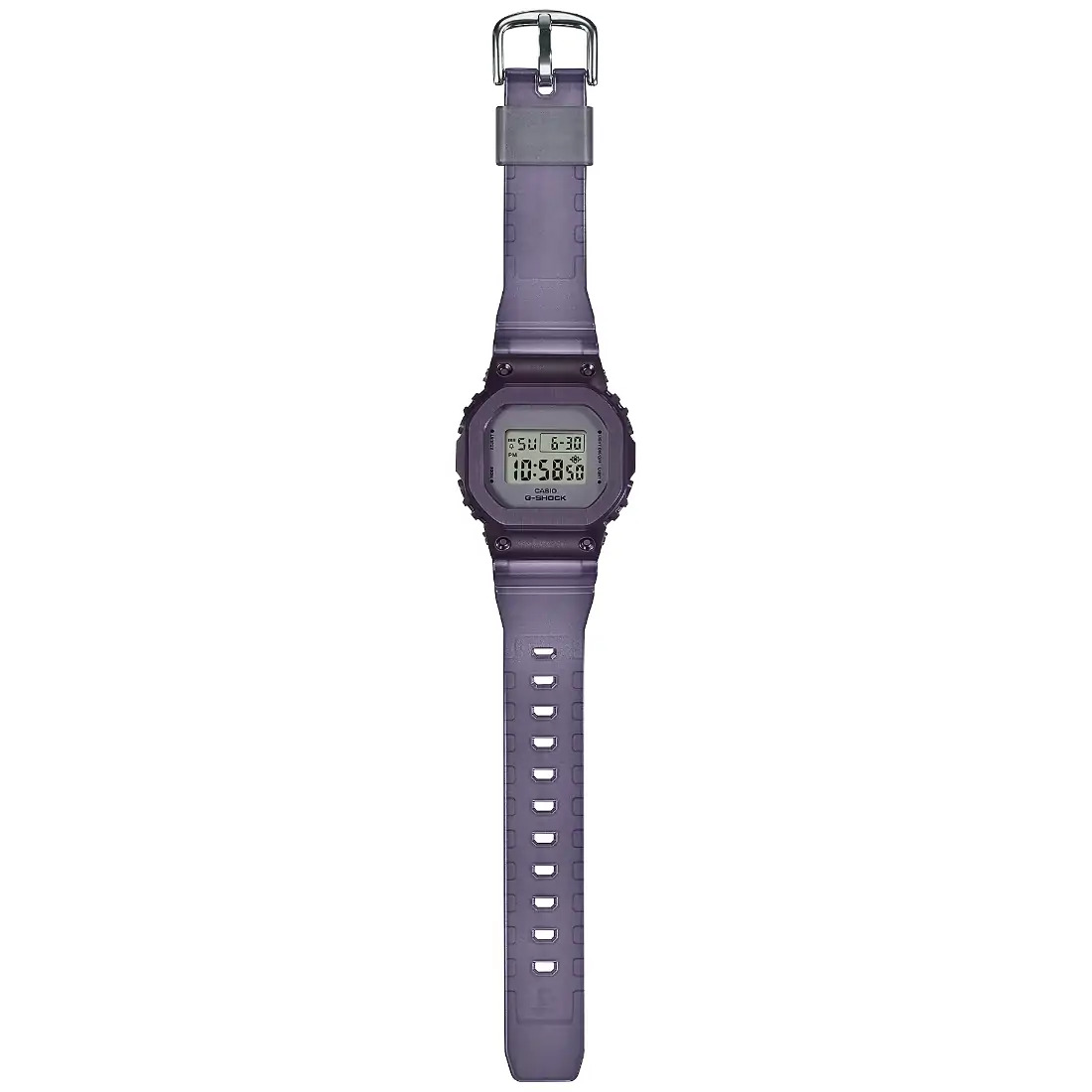 Tamaño de la caja (L× W× H): 43.8 × 38.4 × 10.9 mm Material de la caja/bisel: Resina/acero inoxidable Peso: 50 g Correa de resina Resistente a impactos Resistencia al agua de 200 m Fuente de alimentación: pila