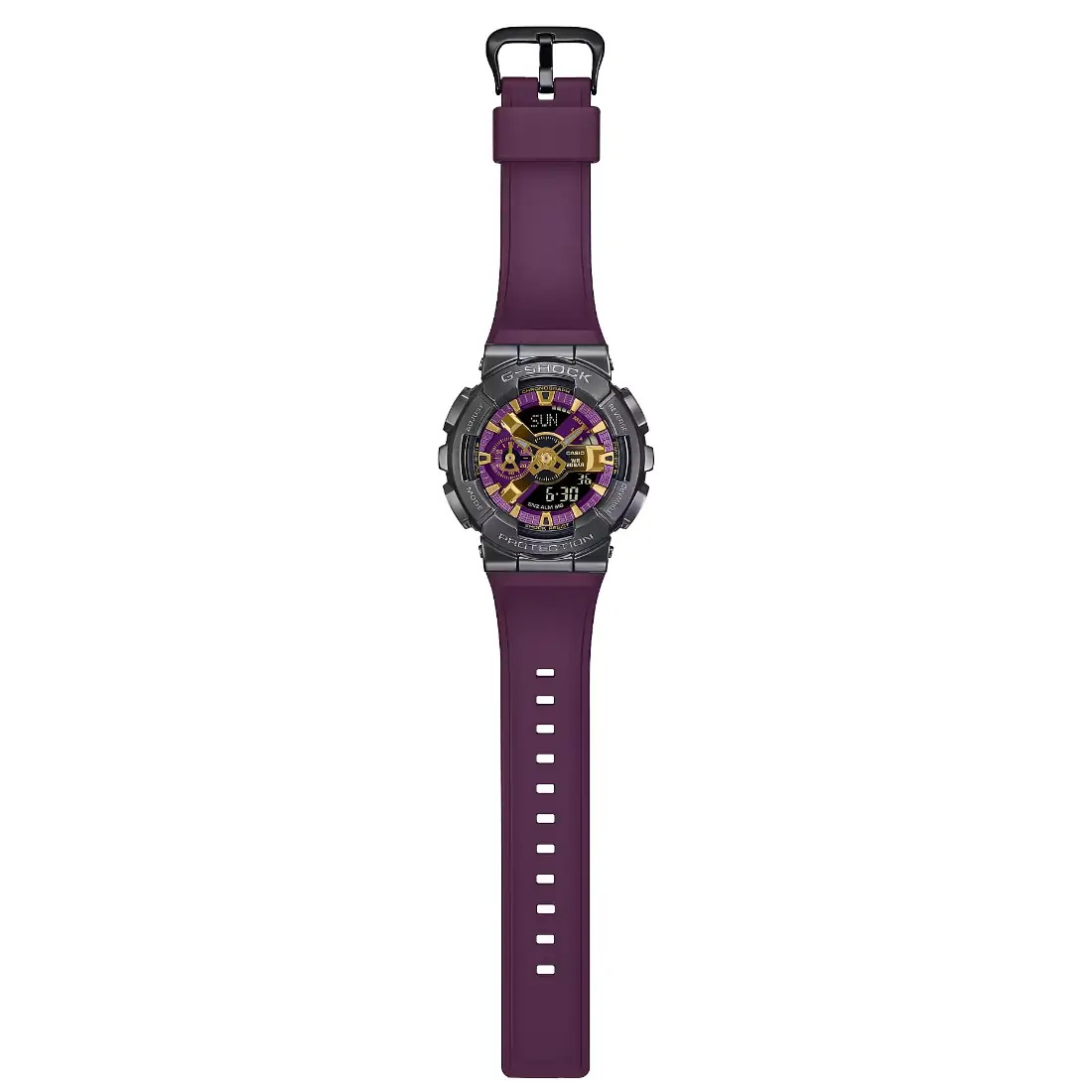 Tamaño de la caja (largo × ancho × alto): 51.9 × 48.8 × 16.9 mm Peso: 93 g Material de la caja y el bisel: Resina/acero inoxidable Correa de resina Resistente a impactos Resistencia magnética Resistencia al agua de 200 m Fuente de alimentación: Pila
