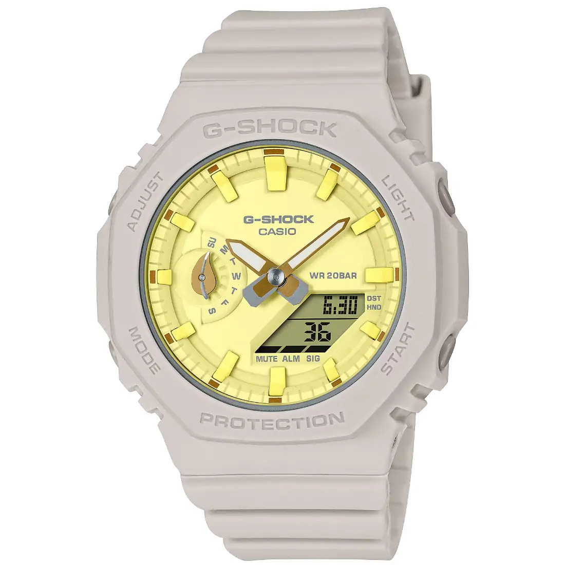 Tamaño de la caja (L× W× H): 46.2 × 42.9 × 11.2 mm Material de la caja/bisel: Carbono/resina de base biológica Peso: 41 g Correa de resina de base biológica Resistente a impactos Estructura Carbon Core Guard Resistencia al agua de 200 m Fuente de alimentación: pila