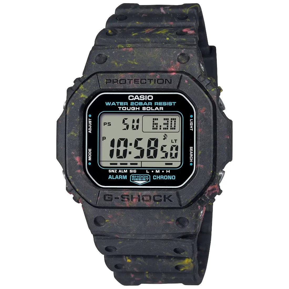 Tamaño de la caja (L× W× H): 46.7 × 43.2 × 12.7 mm Material de la caja/bisel: Resina Peso: 47 g Correa de resina Resistente a impactos Resistencia al agua de 200 m Fuente de alimentación: Tough Solar (con energía solar)