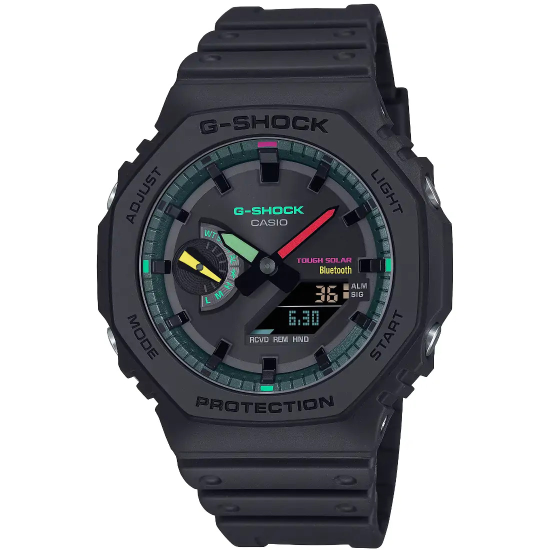Tamaño de la caja (L× W× H): 48.5 × 45.4 × 11.9 mm Material de la caja/bisel: Carbono/resina de base biológica Peso: 52 g Correa de resina de base biológica Resistente a impactos Estructura Carbon Core Guard Resistencia al agua de 200 m Fuente de alimentación: Tough Solar (con energía solar)