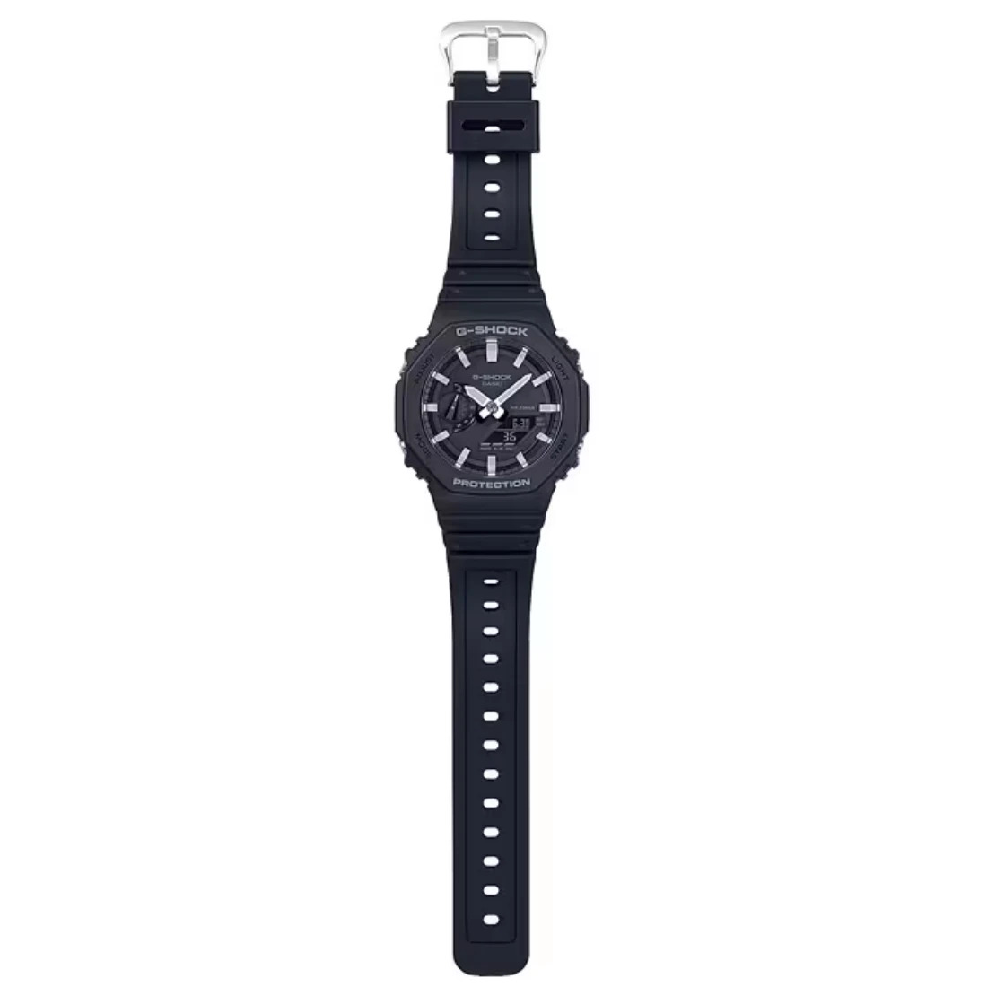 Tamaño de la caja (L× W× H): 48.5 × 45.4 × 11.8 mm Material de la caja/bisel: Carbono/resina Peso: 51 g Correa de resina Resistente a impactos Estructura Carbon Core Guard Resistencia al agua de 200 m Fuente de alimentación: pila