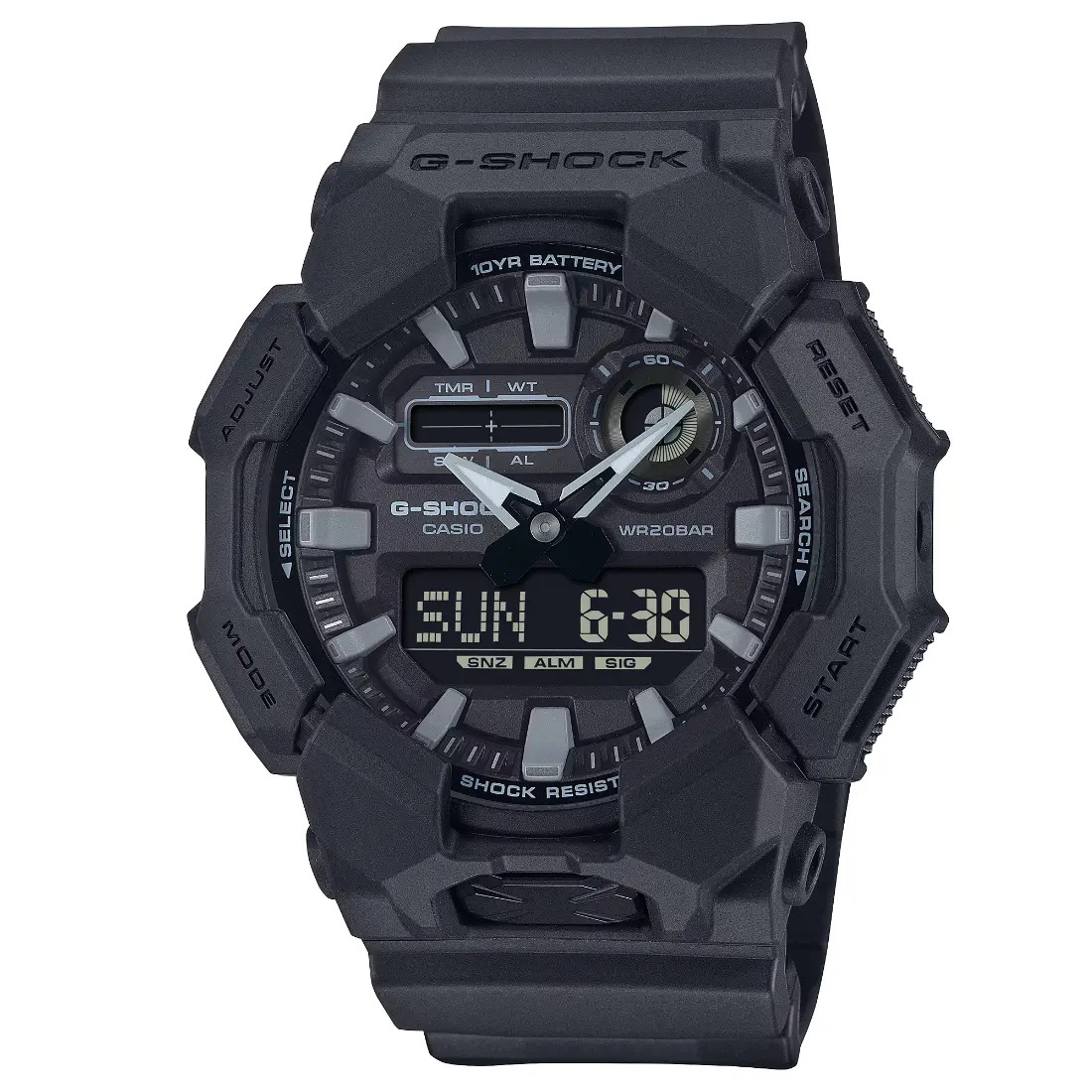 Tamaño de la caja (L× W× H): 55.1 × 51.9 × 17.5 mm Material de la caja/bisel: Carbono de origen biológico/resina de origen biológico Peso: 67 g Correa de resina de base biológica Resistente a impactos Estructura Carbon Core Guard Resistencia al agua de 200 m Fuente de alimentación: pila