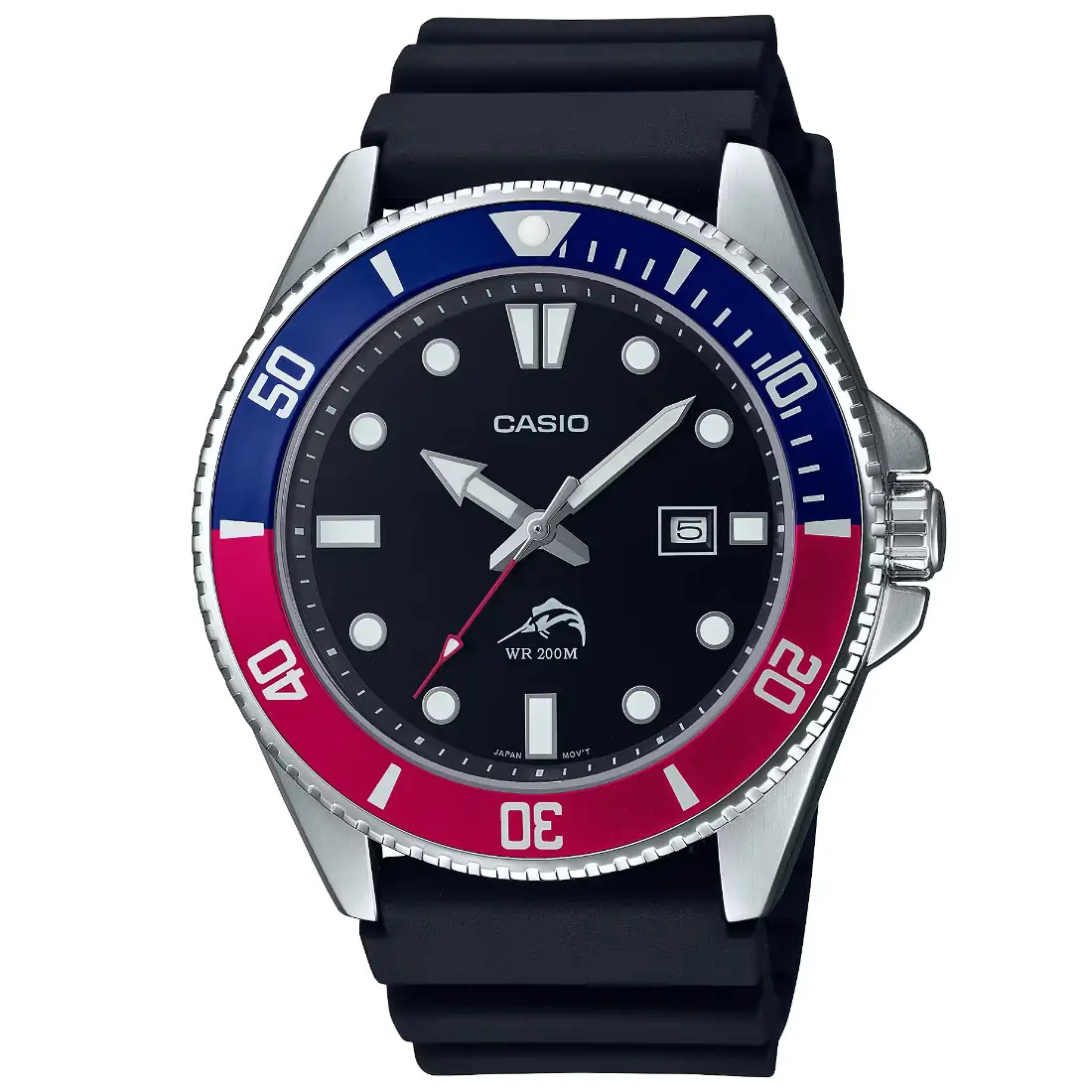 Tamaño de la caja (L× W× H): 49.5 × 46.3 × 12.1 mm Material de la caja/bisel: Acero/ bisel anti-inversión Peso: 92 g Correa de resina Resistencia al agua de 200 m Fuente de alimentación: pila