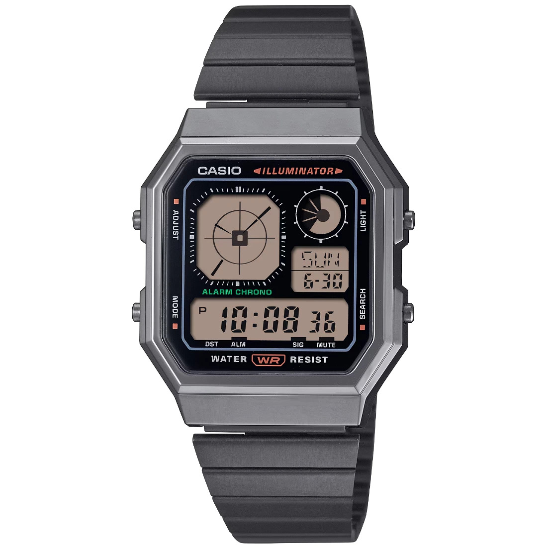 Hora múltiple (4 ciudades diferentes) Hora mundial Cronómetro Temporizador con cuenta regresiva 5 alarmas diarias o de una sola vez Señal de hora Luz de fondo LED (Ámbar) Calendario automático completo (hasta el año 2099) Función de silencio Precisión: ±30 segundos por mes Formato de 12 y 24 horas Funciones clásicas de indicación de la hora: Digital: horas, minutos, segundos, p. m., mes, fecha, día