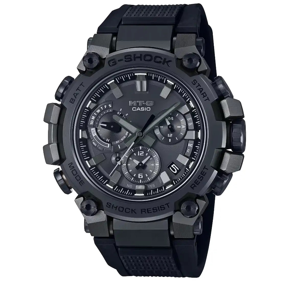 Tamaño de la caja (L× W× H): 51.9 × 50.9 × 12.1 mm Material de la caja/bisel: Resina/acero inoxidable Peso: 111 g Correa de resina TRIPLE G RESIST (resistente a impactos, a la fuerza centrífuga y a las vibraciones) Estructura Carbon Core Guard Resistencia al agua de 200 m Ajuste de hora, Ajuste de hora Reloj radio-controlado; Multibanda 6 Fuente de alimentación: Tough Solar (con energía solar)