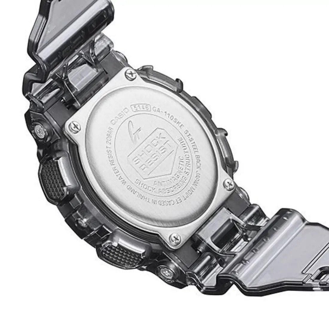 Tamaño de la caja (L× W× H): 55 × 51.2 × 16.9 mm Material de la caja/bisel: Resina Peso: 72 g Correa de resina Resistente a impactos Resistencia magnética Resistencia al agua de 200 m Fuente de alimentación: pila