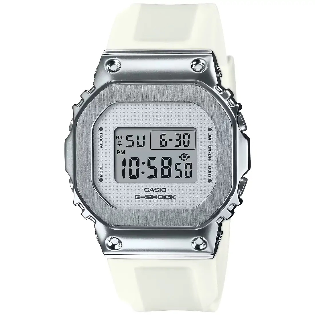 Tamaño de la caja (L× W× H): 43.8 × 38.4 × 10.9 mm Material de la caja/bisel: Resina/acero inoxidable Peso: 50 g Correa de resina Resistente a impactos Resistencia al agua de 200 m Fuente de alimentación: pila
