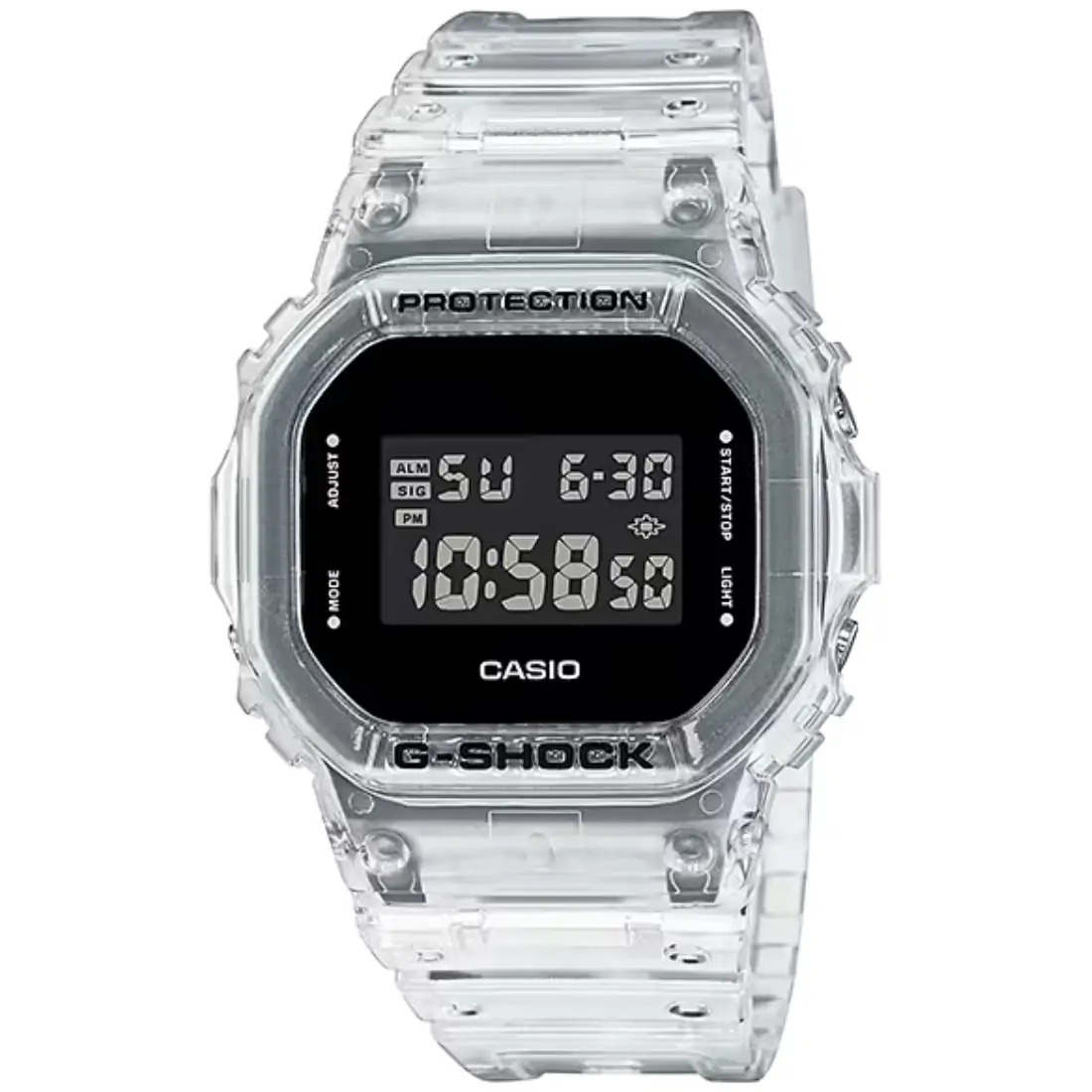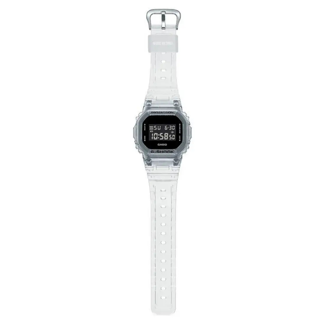 Tamaño de la caja (L× W× H): 48.9 × 42.8 × 13.4 mm Material de la caja/bisel: Resina Peso: 53 g Correa de resina Resistente a impactos Resistencia al agua de 200 m Fuente de alimentación: pila