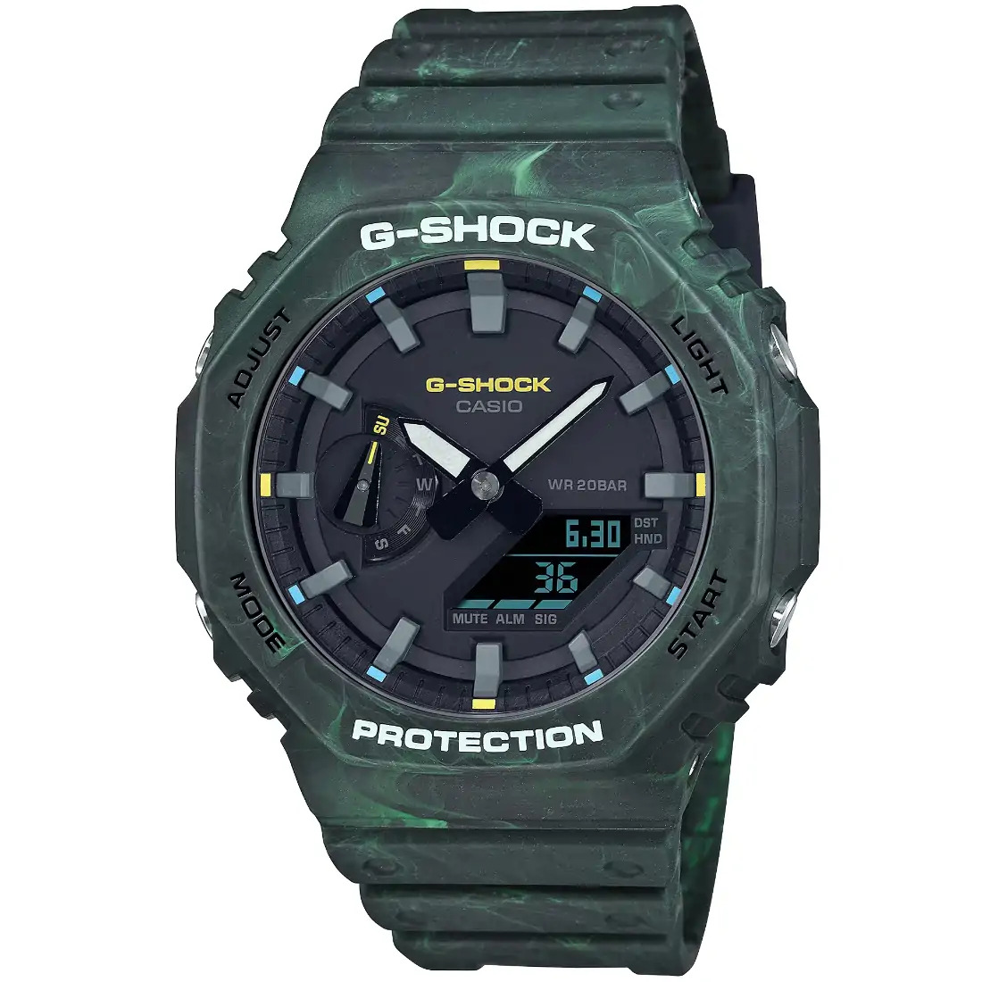 Tamaño de la caja (L× W× H): 48.5 × 45.4 × 11.8 mm Material de la caja/bisel: Carbono/resina Peso: 51 g Correa de resina Resistente a impactos Estructura Carbon Core Guard Resistencia al agua de 200 m Fuente de alimentación: pila